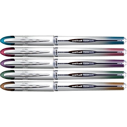Uni Ball Vision Elite. uniball Vision Elite Rollerball Pens, Micro Point (0.5mm), Black, 12 Count, 69000 At 2 to 3 dollars apiece, the uni-ball Vision Elite is a pen that's positioned at the top-end of the inexpensive, plastic market The uni-ball Vision Elite pen Airplane Safe' technology prevents leaks created by pressure changes in aircraft, making it perfect for the frequent traveller